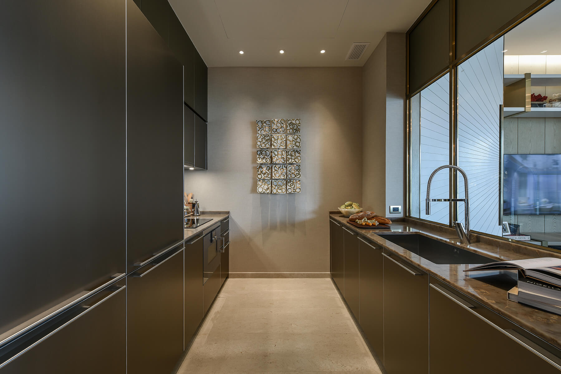 Industrial meets elegance in this Bangkok condo. The concrete wall and warehouse-like stairs sit in harmony with the sleek contemporary cabinets. The island and countertops, constructed with Arnolfini marble-effect quartz, make a gentle and elegant statement that respects the rest of the interior. Natural elements of wood and rattan bring warmth to the scheme, while […]